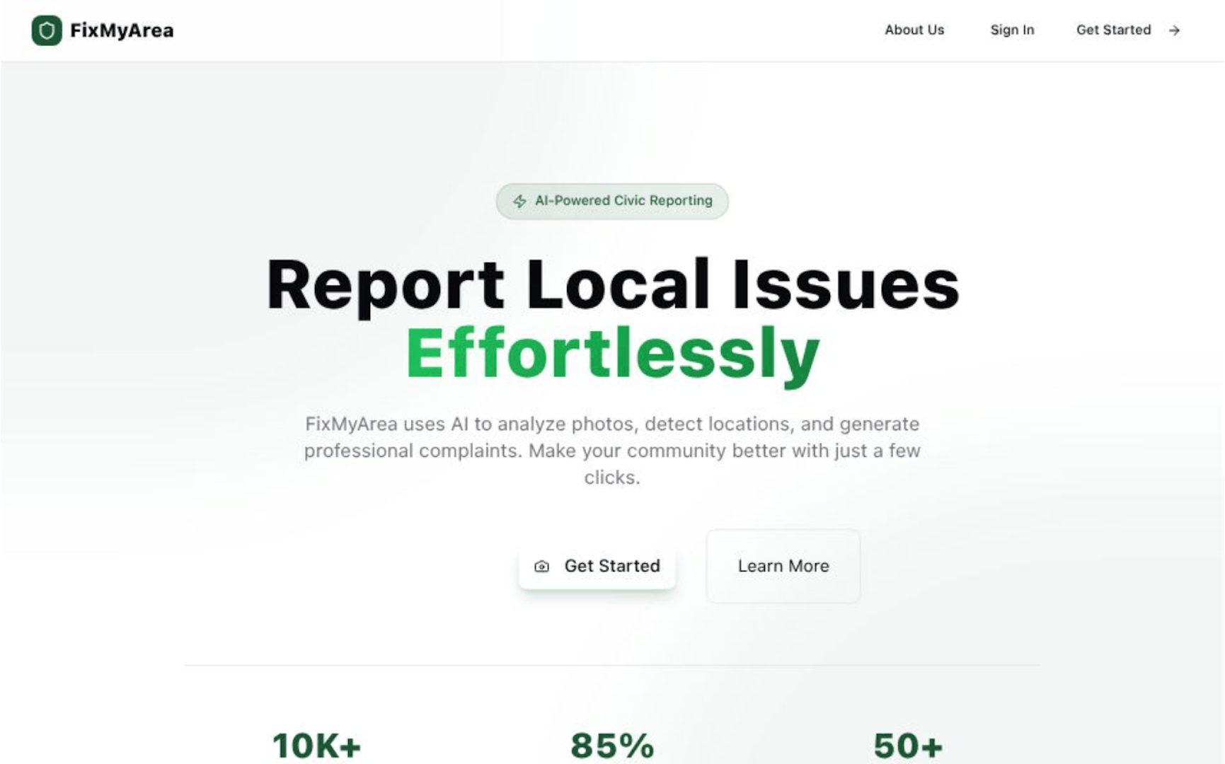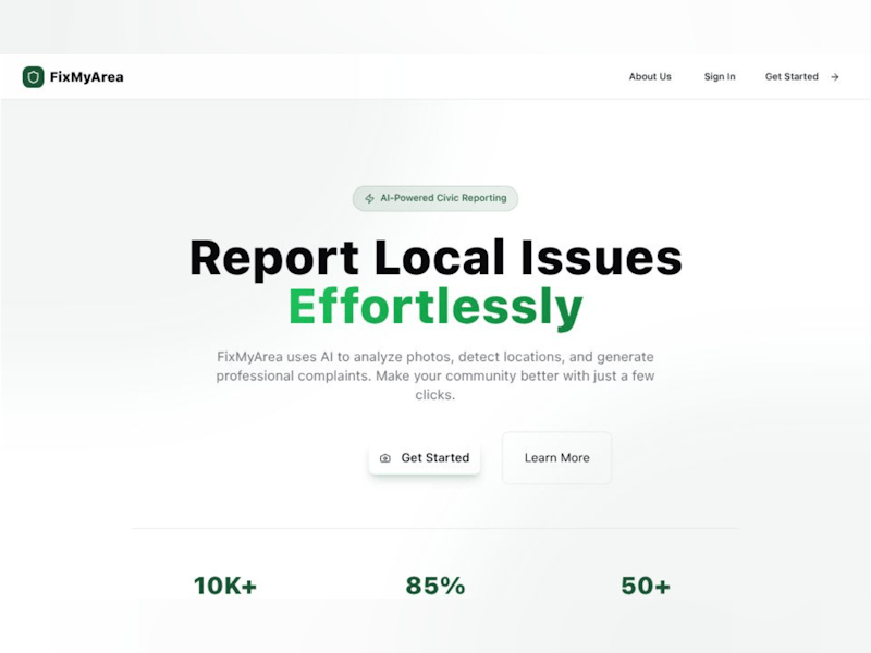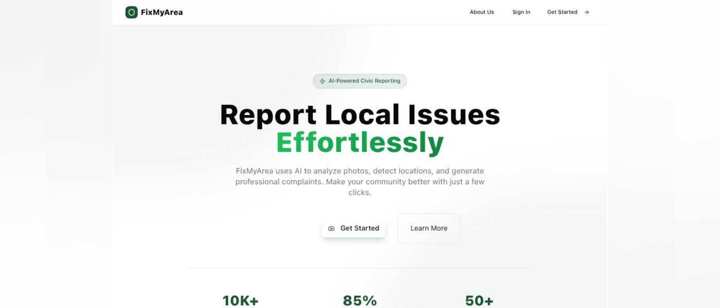 FixMyArea is an AI-powered civic issue reporting platform that allows citizens to report local problems such as potholes, garbage overflow, and water leakage by simply uploading a photo. The system automatically detects the issue type, generates a formal complaint, and routes it to the appropriate department while enabling real-time tracking and public transparency.