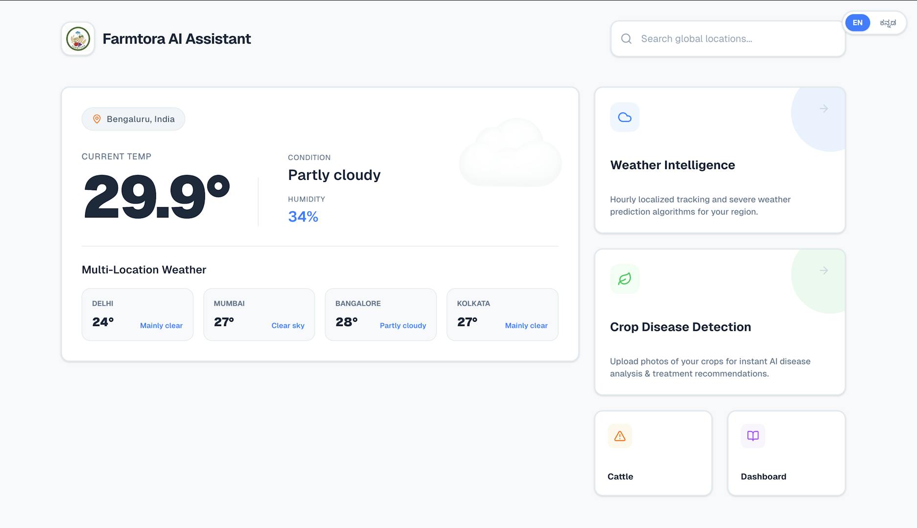It delivers personalized farming advice in English and Kannada making smart agriculture simple and accessible for everyone.